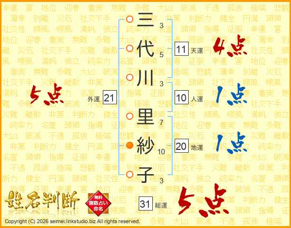 三代川里紗子さんの総運は31画の5点!