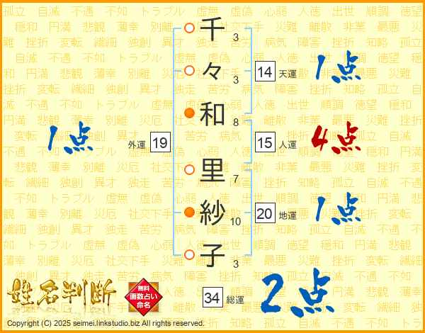 千々和里紗子さんの総運は34画の2点!