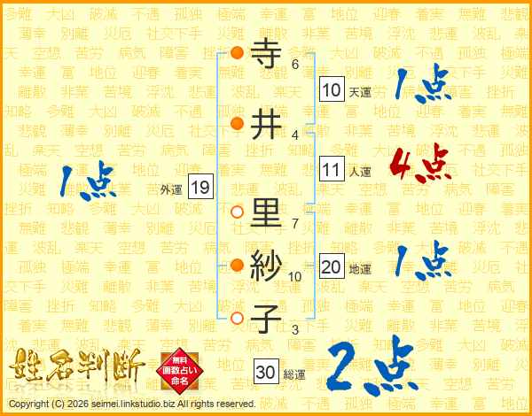 寺井里紗子さんの総運は30画の2点!
