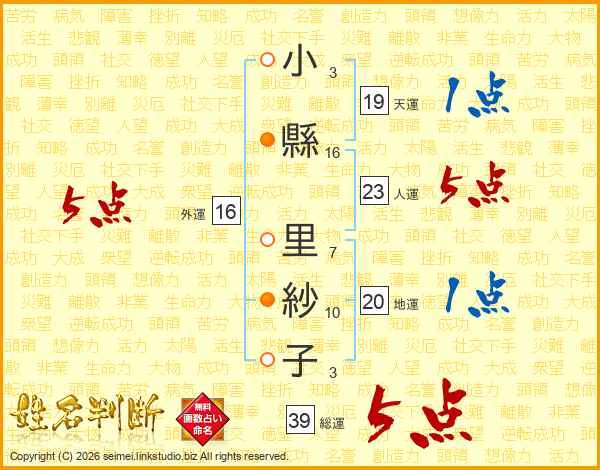 小縣里紗子さんの総運は39画の5点!