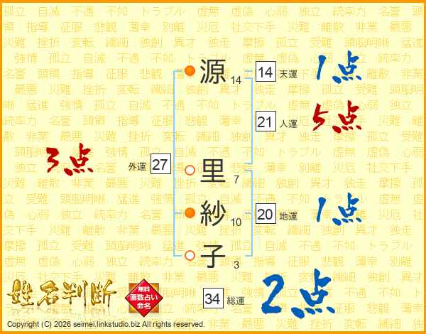 源里紗子さんの総運は34画の2点!