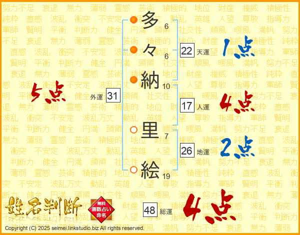 多々納里絵さんの総運は48画の4点!
