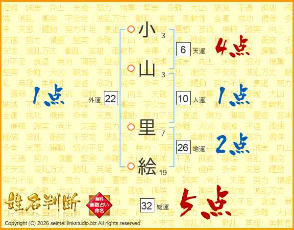 小山里絵さんの地運は26画の2点!