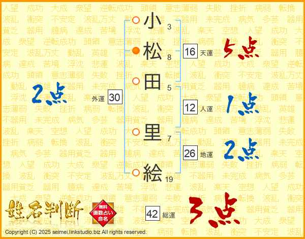 小(3画)松(8画)田(5画) 里(7画)絵(19画)