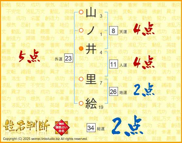 山ノ井里絵さんの総運は34画の2点!