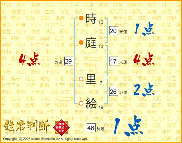 時庭里絵さんの総運は46画の1点!