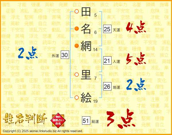 田名網里絵さんの天運は25画の4点!
