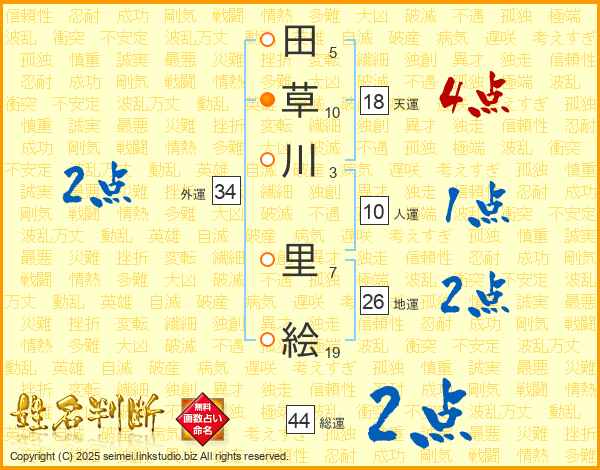 田草川里絵さんの総運は44画の2点!