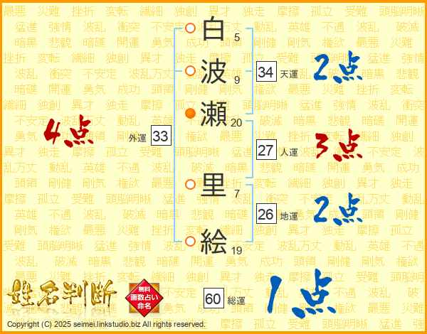 白波瀬里絵さんの総運は60画の1点!