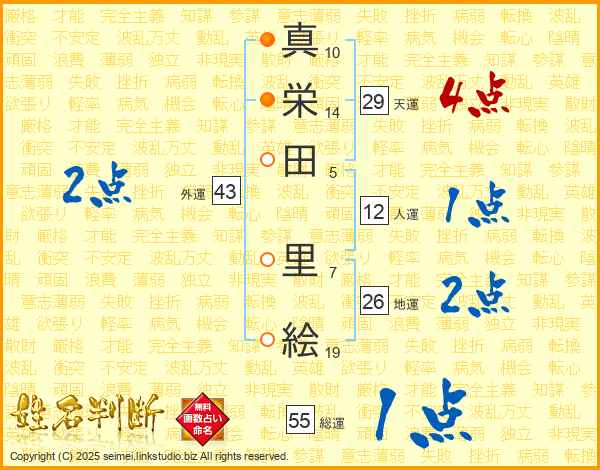 真栄田里絵さんの天運は29画の4点!