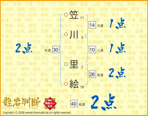 笠川里絵さんの天運は14画の1点!