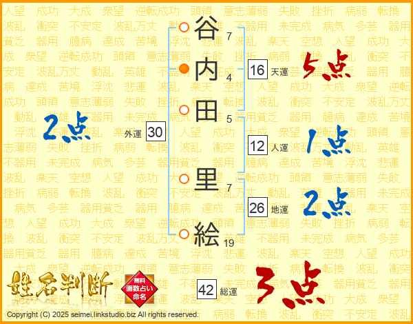 谷内田里絵さんの総運は42画の3点!