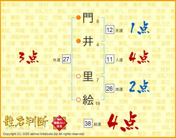 門井里絵さんの総運は38画の4点!