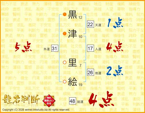 黒津里絵さんの地運は26画の2点!