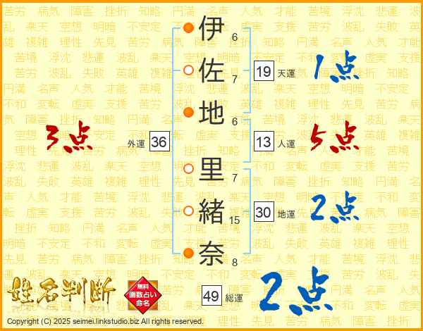 伊佐地里緒奈さんの天運は19画の1点!