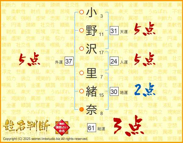 小野沢里緒奈さんの天運は31画の5点!