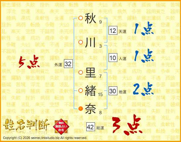 秋川里緒奈さんの外運は32画の5点!