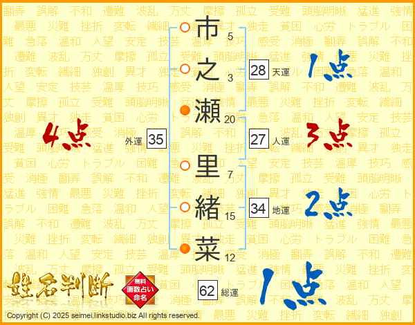市之瀬里緒菜さんの外運は35画の4点!