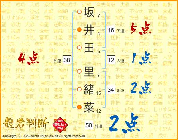 坂井田里緒菜さんの外運は38画の4点!