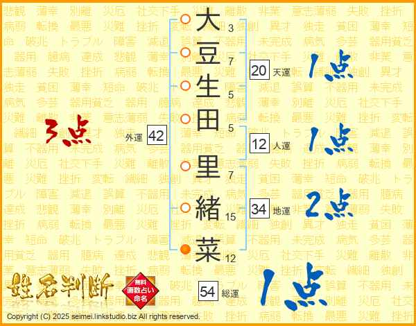 大豆生田里緒菜さんの総運は54画の1点!