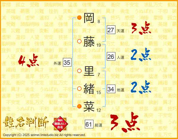 岡藤里緒菜さんの外運は35画の4点!