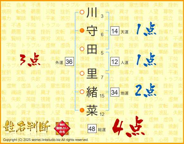 川守田里緒菜さんの総運は48画の4点!