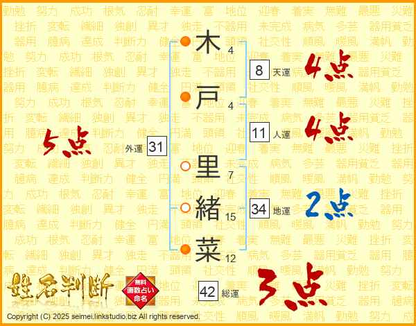 木戸里緒菜さんの外運は31画の5点!