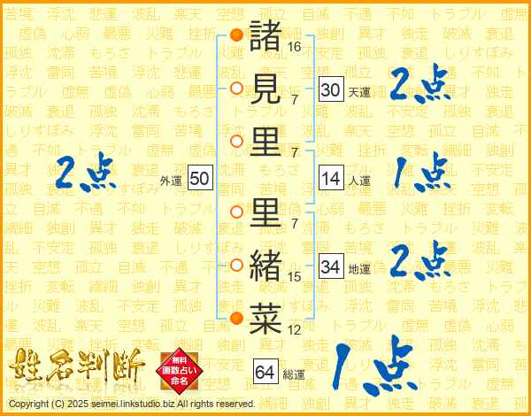 諸見里里緒菜さんの総運は64画の1点!