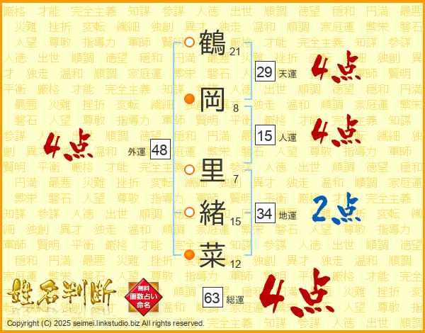鶴岡里緒菜さんの総運は63画の4点!