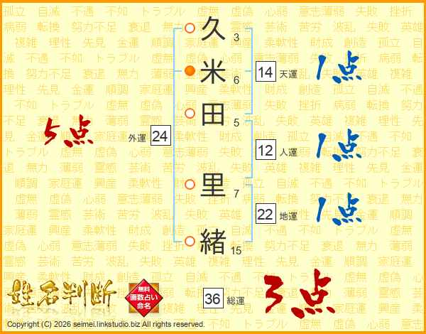 久米田里緒さんの総運は36画の3点!