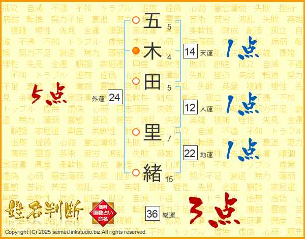五木田里緒さんの天運は14画の1点!