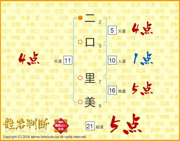 二口里美さんの総運は21画の5点!