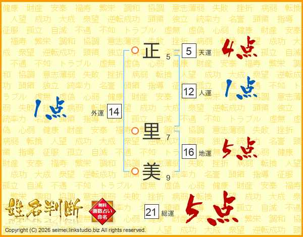 正(5画) 里(7画)美(9画)