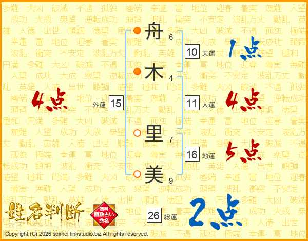 舟木里美さんの総運は26画の2点!