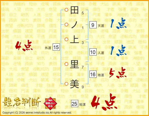 田ノ上里美さんの総運は25画の4点!
