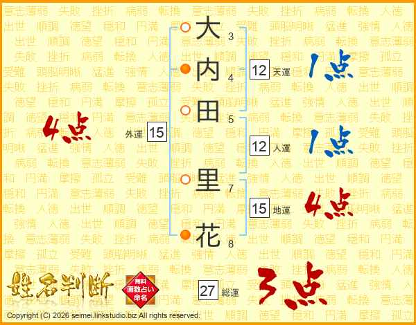 大内田里花さんの総運は27画の3点!