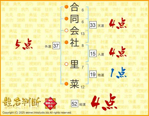 合同会社里菜さんの天運は33画の4点!