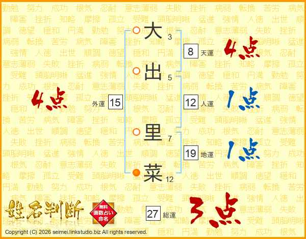 大出里菜さんの総運は27画の3点!