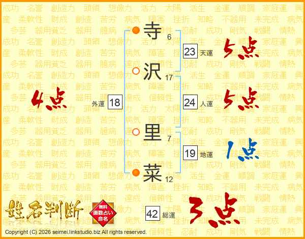 寺沢里菜さんの総運は42画の3点!