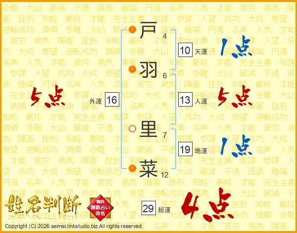 戸羽里菜さんの総運は29画の4点!