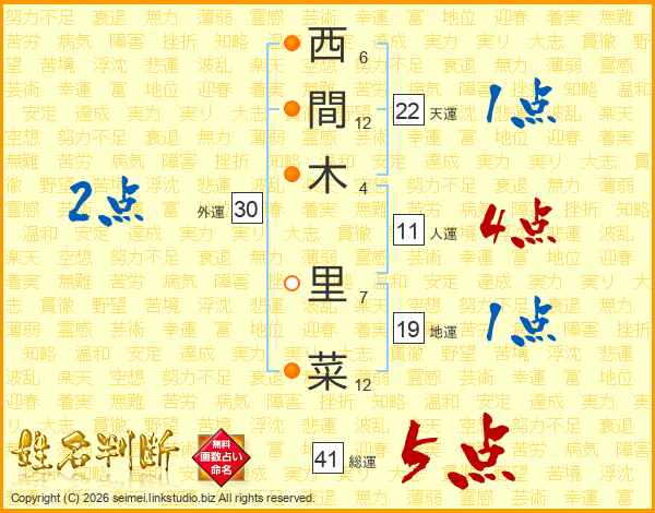 西間木里菜さんの総運は41画の5点!