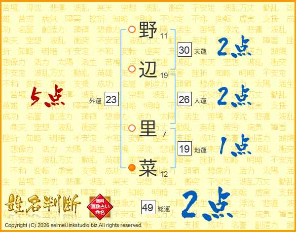 野辺里菜さんの総運は49画の2点!