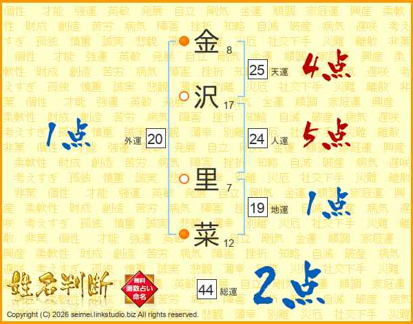金運 順調 家庭運 興産 柔軟性 財成 創造