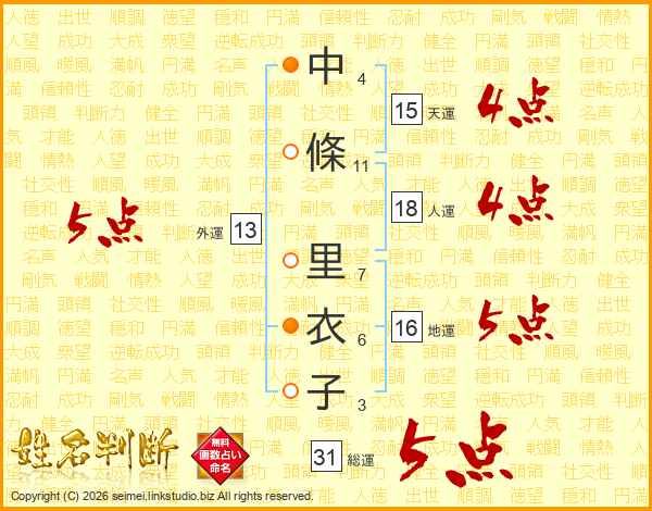 中條里衣子さんの総運は31画の5点!