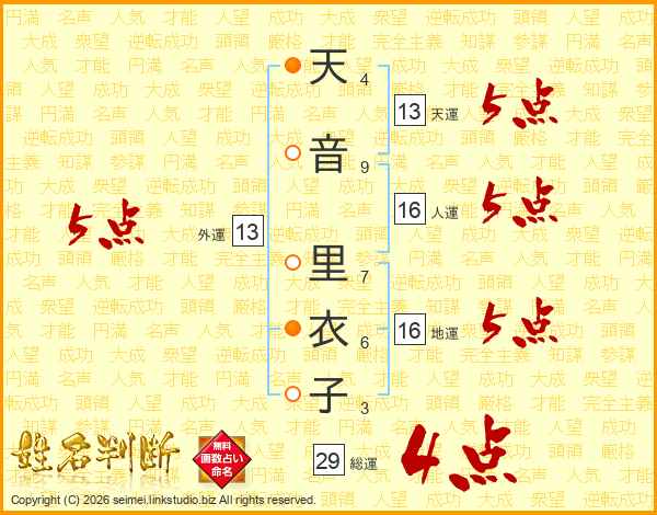 天音里衣子さんの外運は13画の5点!