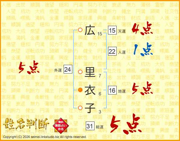 広里衣子さんの総運は31画の5点!