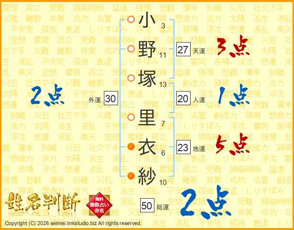 小野塚里衣紗さんの天運は27画の3点!