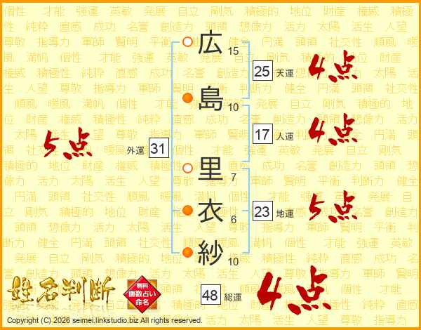広島里衣紗さんの総運は48画の4点!
