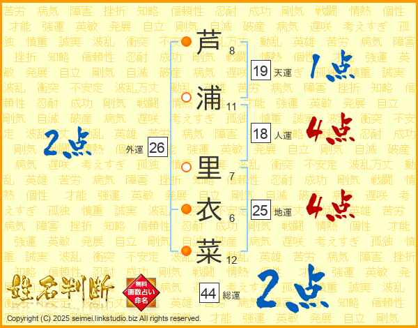 芦浦里衣菜さんの地運は25画の4点!