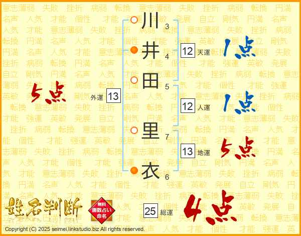 川井田里衣さんの総運は25画の4点!